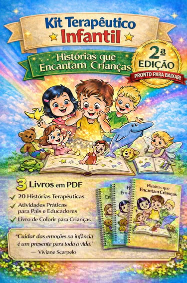 Um kit com 20 histórias terapêuticas que ajudam no desenvolvimento emocional infantil, com atividades para pais e educadores.